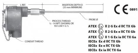 MINCO Flameproof ATEX, CE, IECEx Thermocouple Assemblies